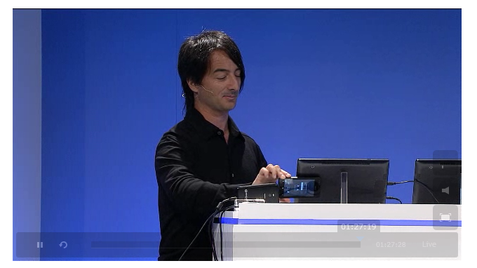 • Below: Joe Belfiore demonstrating how you can tap your phone to your tablet to kick off a multi-player game! The devices create an ad-hoc peer-to-peer network connection for multi-player communications!