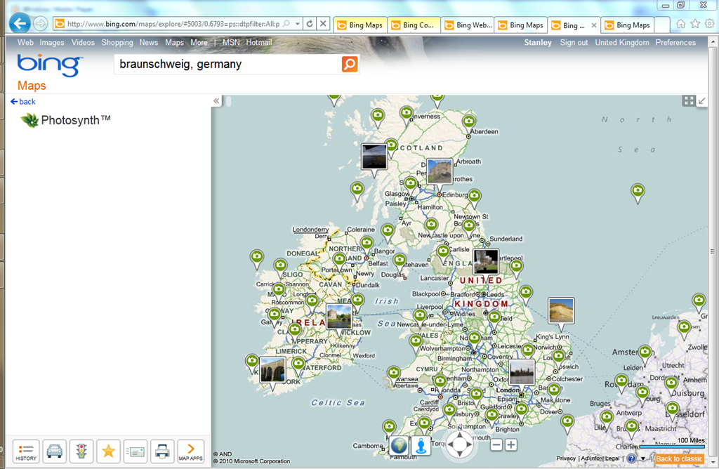 There’s a great number of Photosynth images to see – below is a screenshot of those scattered around the UK. According to the Map App, there are currently 40,989 Photosynths made from 2,973,935 photos at this particular moment. Go see all them here.