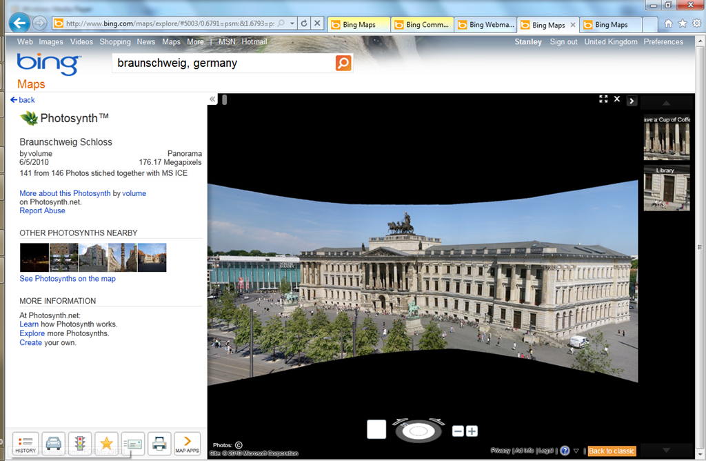 Microsoft Photosynth is actually a great service for creating massive panoramic, gigapixel or 3D photos by stitching together multiple pictures. The technology is spectacular, and you can easily upload and stitch your own photos. Thanks to geo-tagging, it’s been possible to integrate Photosynth with Bing Maps.